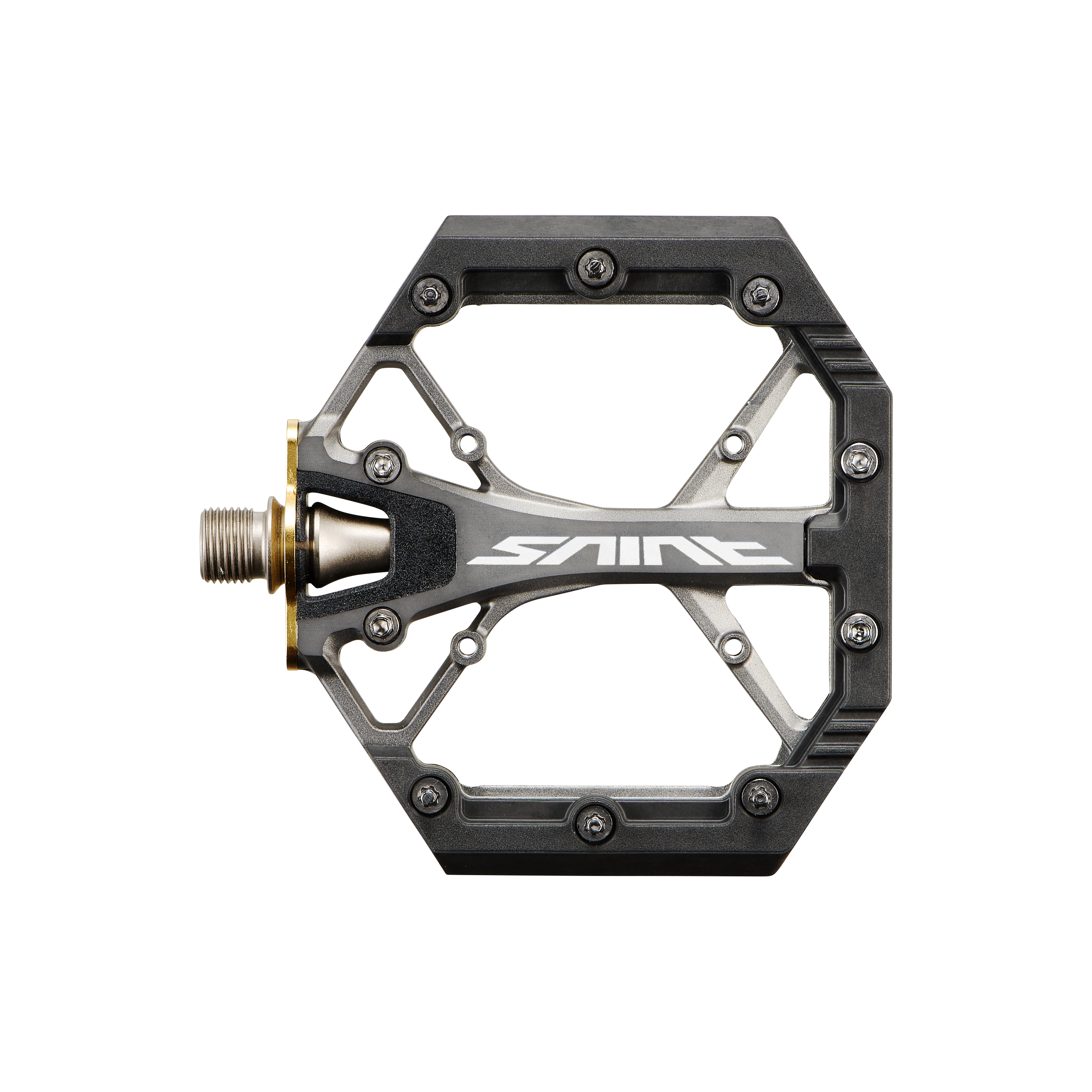 Plataforma extra ancha de doble concavidad: 121 mm x 110 mm 10 pines de tracción por lado con 2 posiciones interiores opcionales Incluye pines de 6 mm y 3 mm, además de una herramienta específica para pines Diseño de plataforma plana para una altura de pedal uniforme Cuerpo del pedal delgado para mayor distancia al suelo Cuerpo del pedal de aleación forjada Pines de tracción resistentes a los impactos Eje y buje de construcción duradera Totalmente reparable con repuestos fácilmente disponibles Peso: 423 gramos
